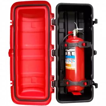 Пенал обеспечивает защиту огнетушителя от внешних механических воздействий, а также предотвращает попадание внутрь пыли и влаги за счет применения резинового уплотнителя крышки.